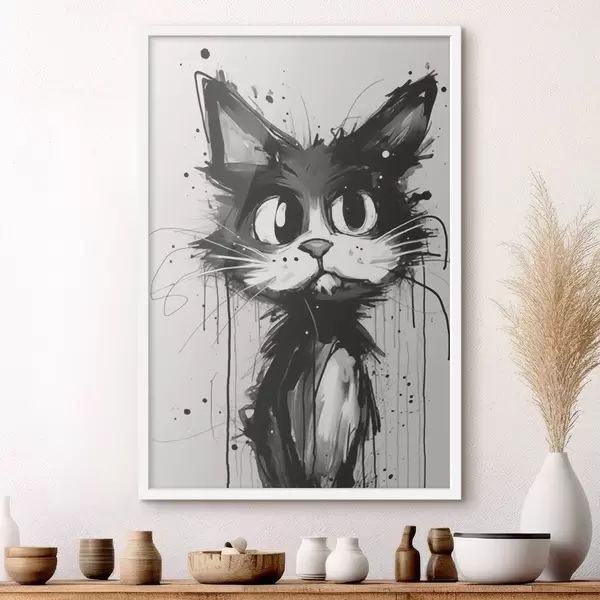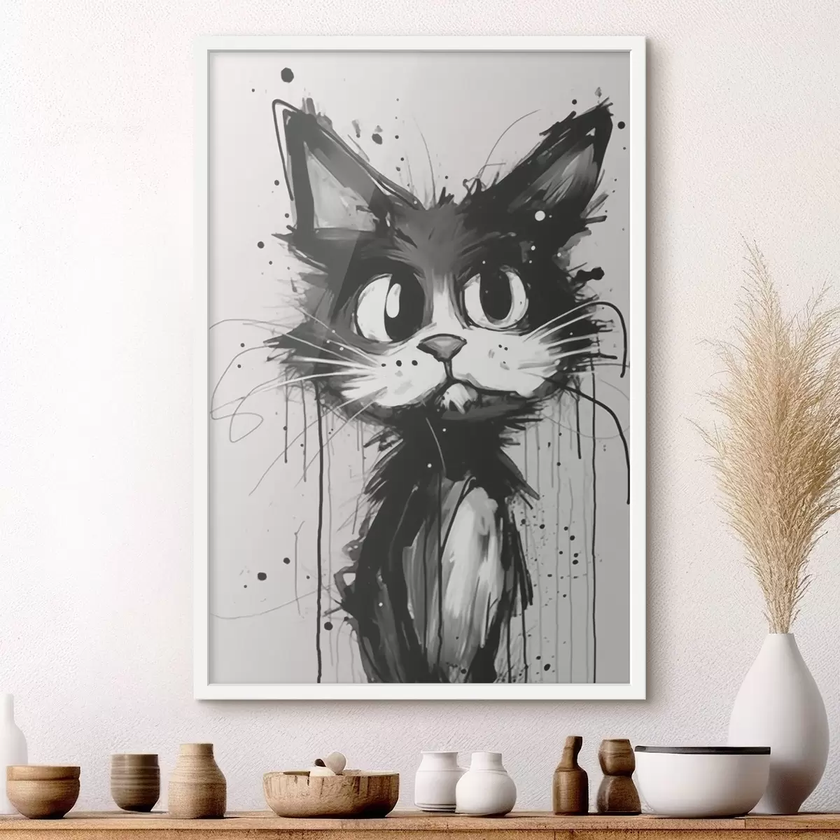 Poster Katze im Skizzenstil mit Farbspritzern Nr f44483