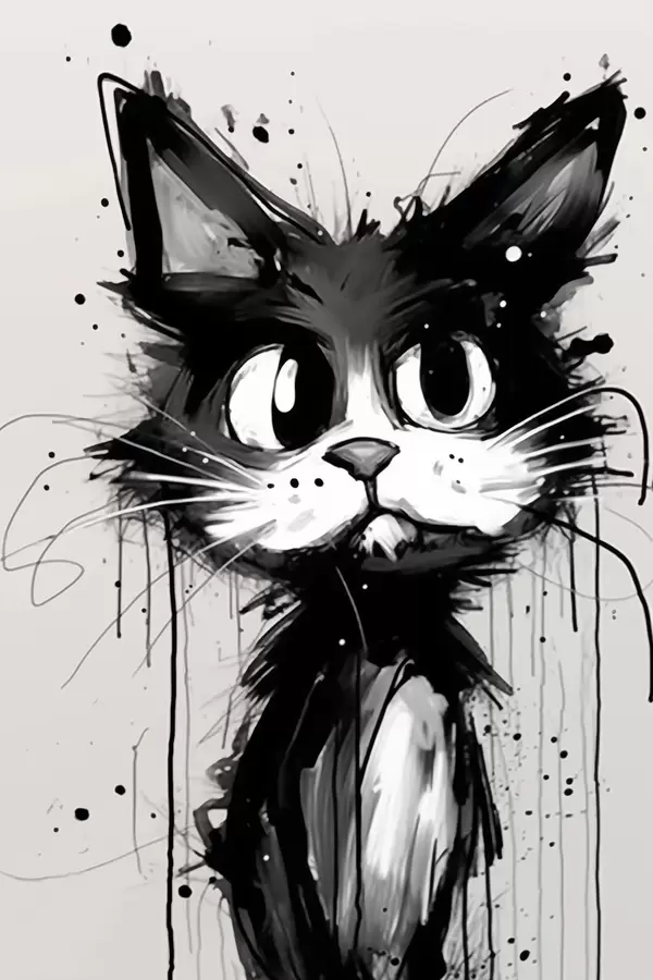 Poster Katze im Skizzenstil mit Farbspritzern Nr f44483