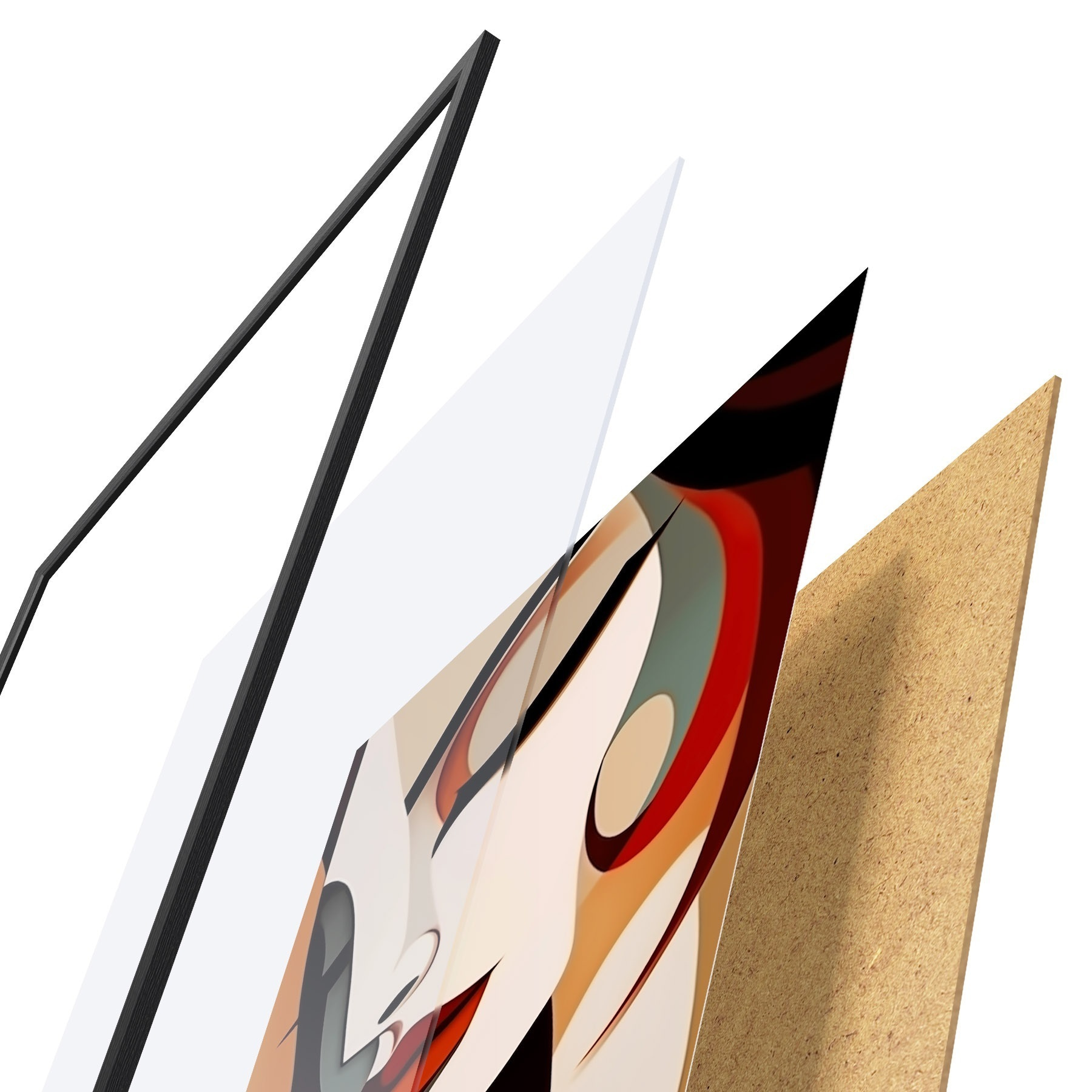 Das Poster besteht aus einem Rahmen, Plexiglas, einem gedruckten Bild und einer Rückwand aus Spanplatten. Dank der Halterungen auf der Rückseite kann das Poster sofort an die Wand gehängt werden.