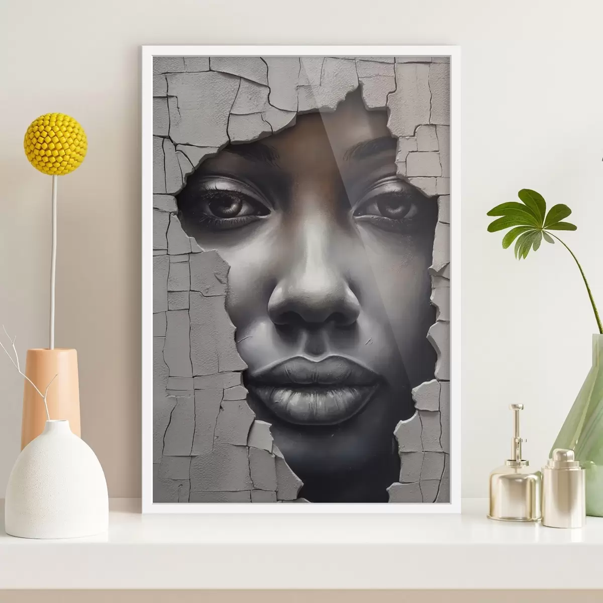 Poster Gesicht in den Ritzen der Wand Nr f44495