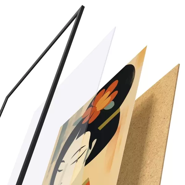 Das Poster besteht aus einem Rahmen, Plexiglas, einem gedruckten Bild und einer Rückwand aus Spanplatten. Dank der Halterungen auf der Rückseite kann das Poster sofort an die Wand gehängt werden.