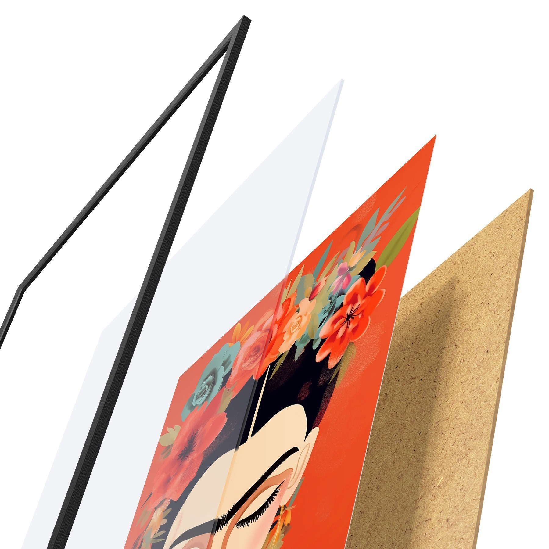 Das Poster besteht aus einem Rahmen, Plexiglas, einem gedruckten Bild und einer Rückwand aus Spanplatten. Dank der Halterungen auf der Rückseite kann das Poster sofort an die Wand gehängt werden.