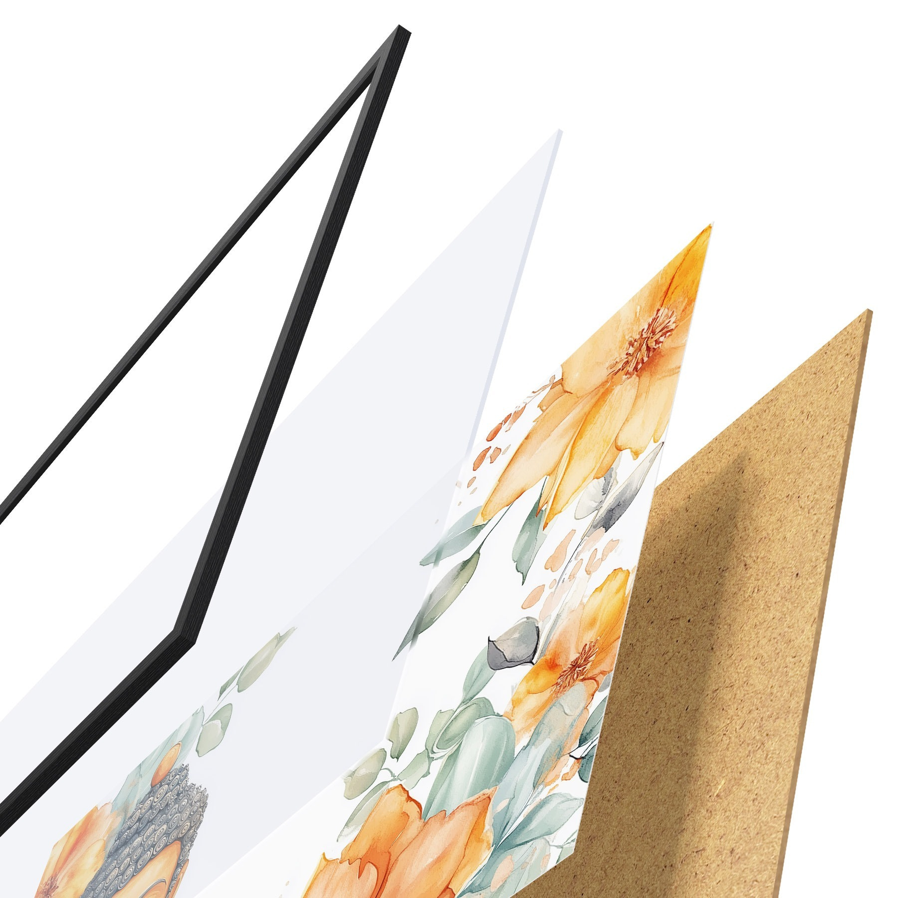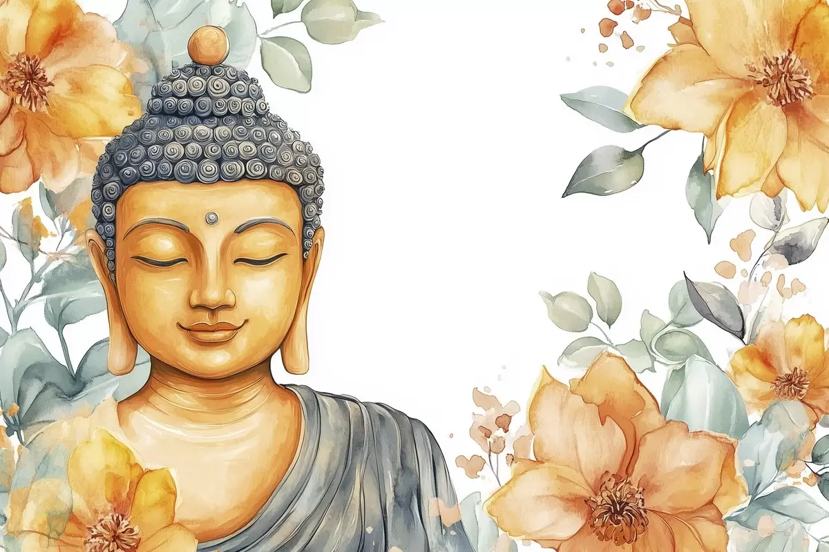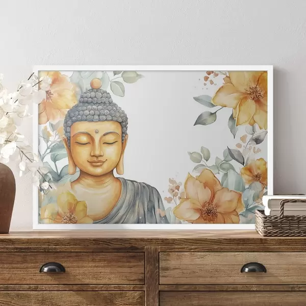 Poster Buddha umgeben von orangefarbenen Blumen, Aquarellstil Nr f44508