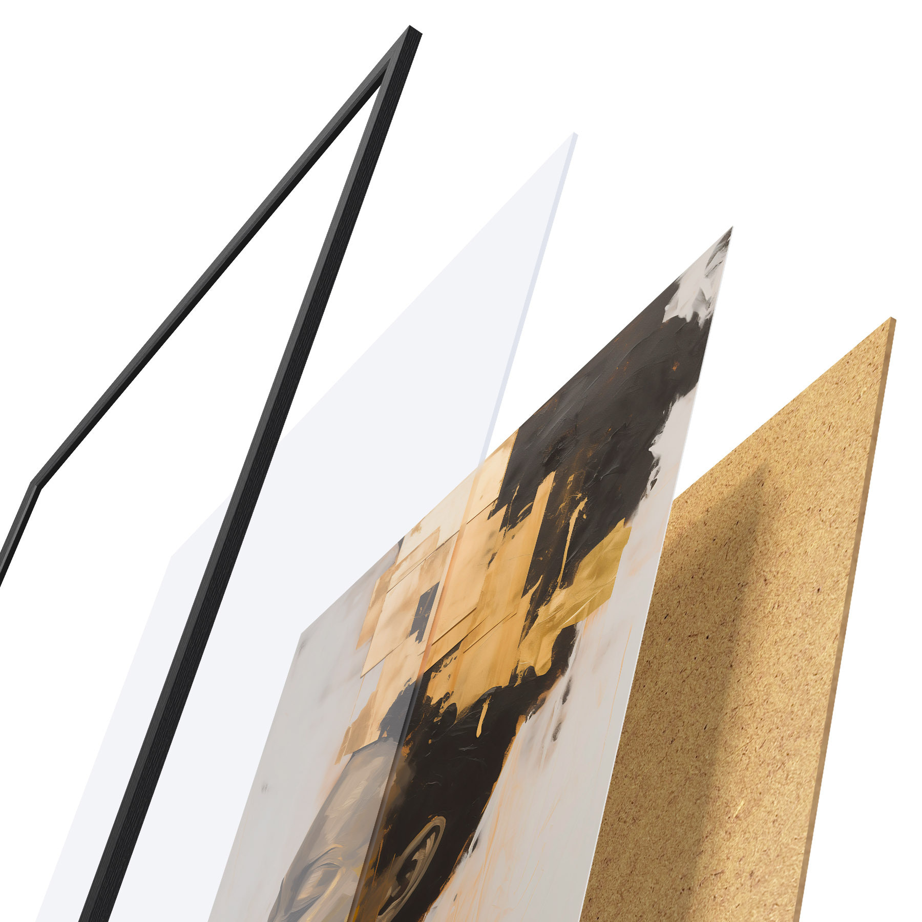 Das Poster besteht aus einem Rahmen, Plexiglas, einem gedruckten Bild und einer Rückwand aus Spanplatten. Dank der Halterungen auf der Rückseite kann das Poster sofort an die Wand gehängt werden.