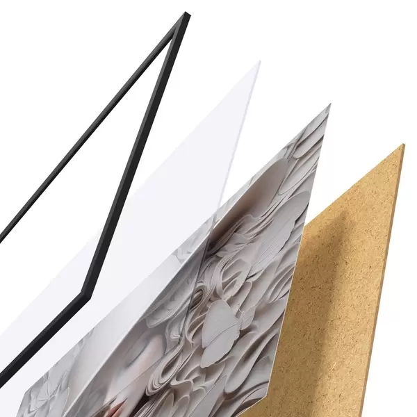 Das Poster besteht aus einem Rahmen, Plexiglas, einem gedruckten Bild und einer Rückwand aus Spanplatten. Dank der Halterungen auf der Rückseite kann das Poster sofort an die Wand gehängt werden.