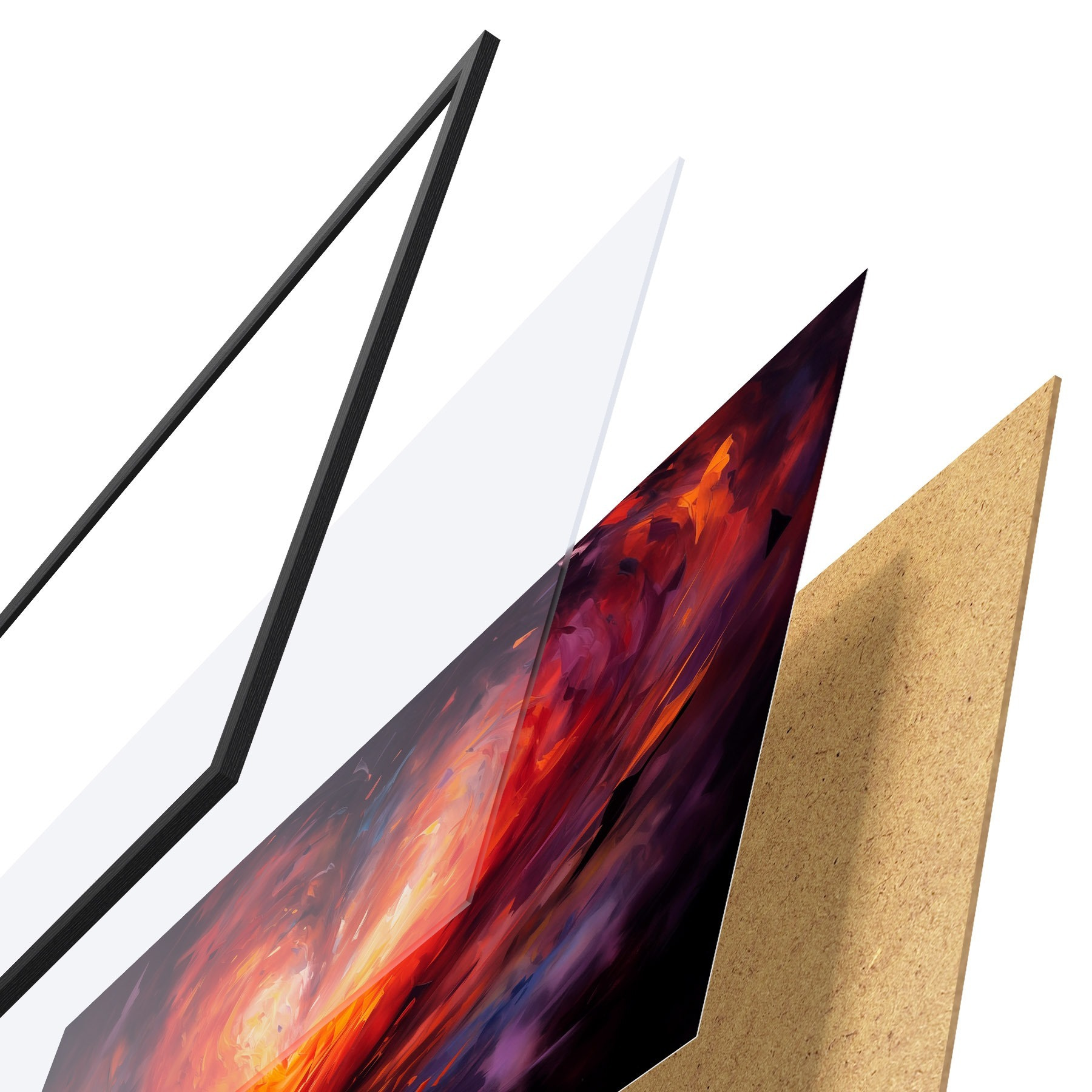 Das Poster besteht aus einem Rahmen, Plexiglas, einem gedruckten Bild und einer Rückwand aus Spanplatten. Dank der Halterungen auf der Rückseite kann das Poster sofort an die Wand gehängt werden.