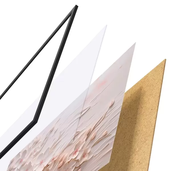 Das Poster besteht aus einem Rahmen, Plexiglas, einem gedruckten Bild und einer Rückwand aus Spanplatten. Dank der Halterungen auf der Rückseite kann das Poster sofort an die Wand gehängt werden.