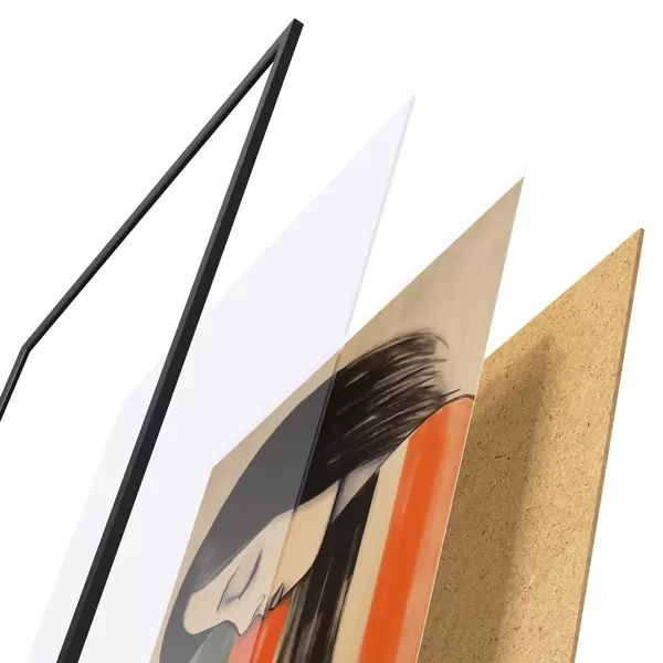 Das Poster besteht aus einem Rahmen, Plexiglas, einem gedruckten Bild und einer Rückwand aus Spanplatten. Dank der Halterungen auf der Rückseite kann das Poster sofort an die Wand gehängt werden.