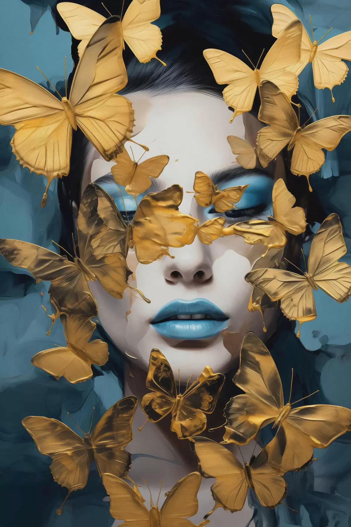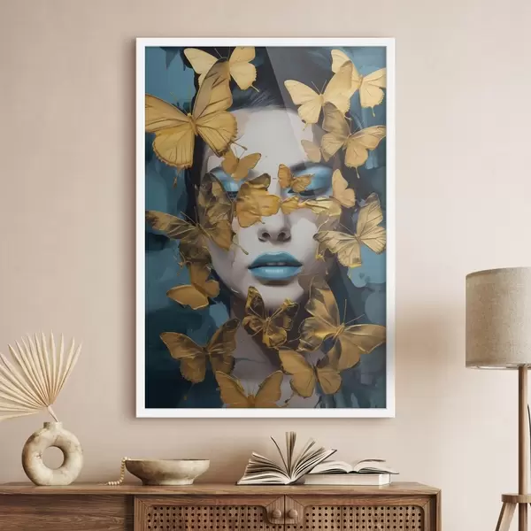 Poster Porträt eines Mädchens mit Schmetterlingen f44583