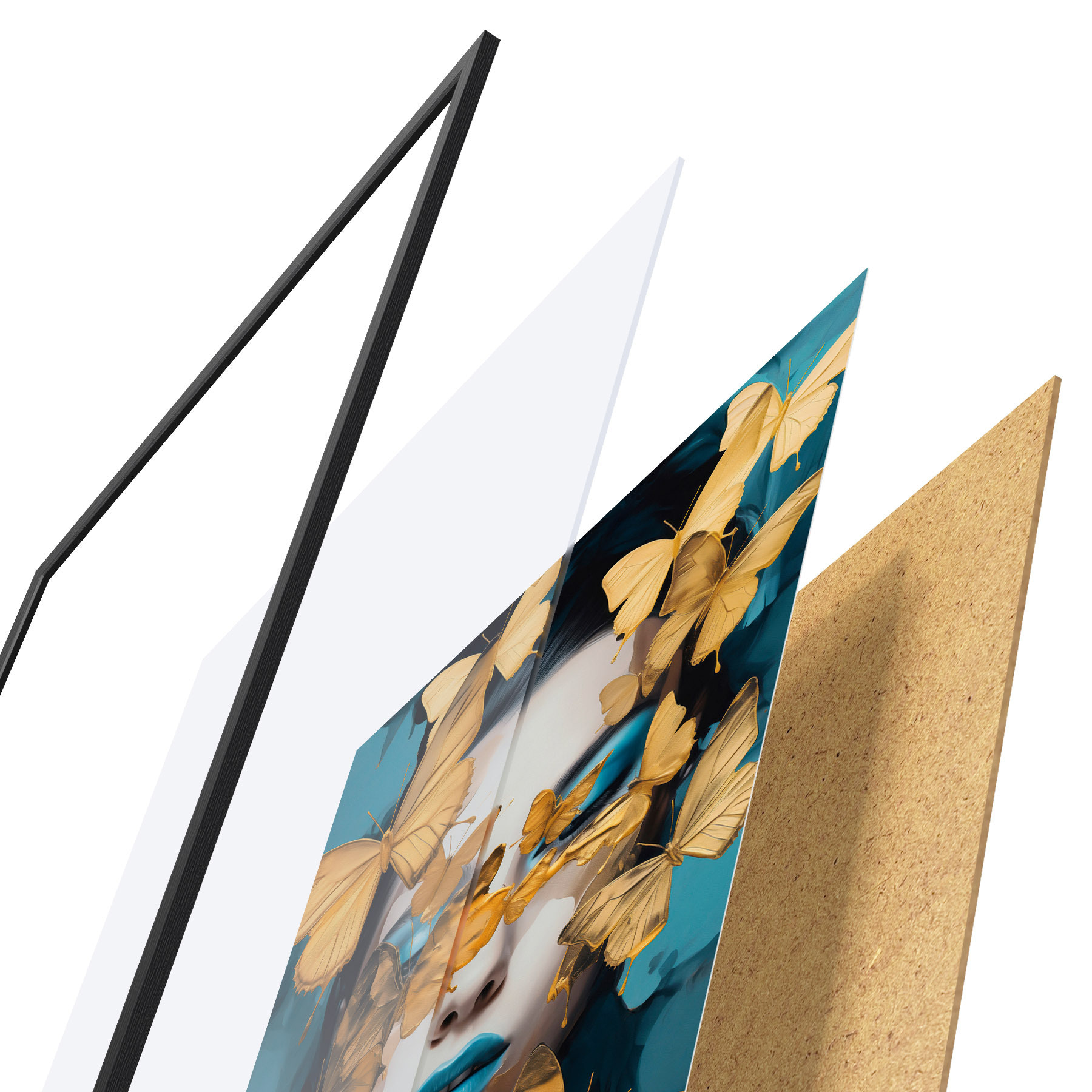 Das Poster besteht aus einem Rahmen, Plexiglas, einem gedruckten Bild und einer Rückwand aus Spanplatten. Dank der Halterungen auf der Rückseite kann das Poster sofort an die Wand gehängt werden.