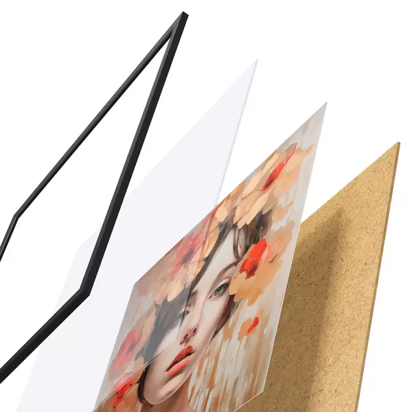Das Poster besteht aus einem Rahmen, Plexiglas, einem gedruckten Bild und einer Rückwand aus Spanplatten. Dank der Halterungen auf der Rückseite kann das Poster sofort an die Wand gehängt werden.