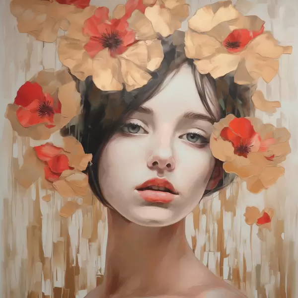 Poster Porträt eines Mädchens mit Blumen Nr f44593