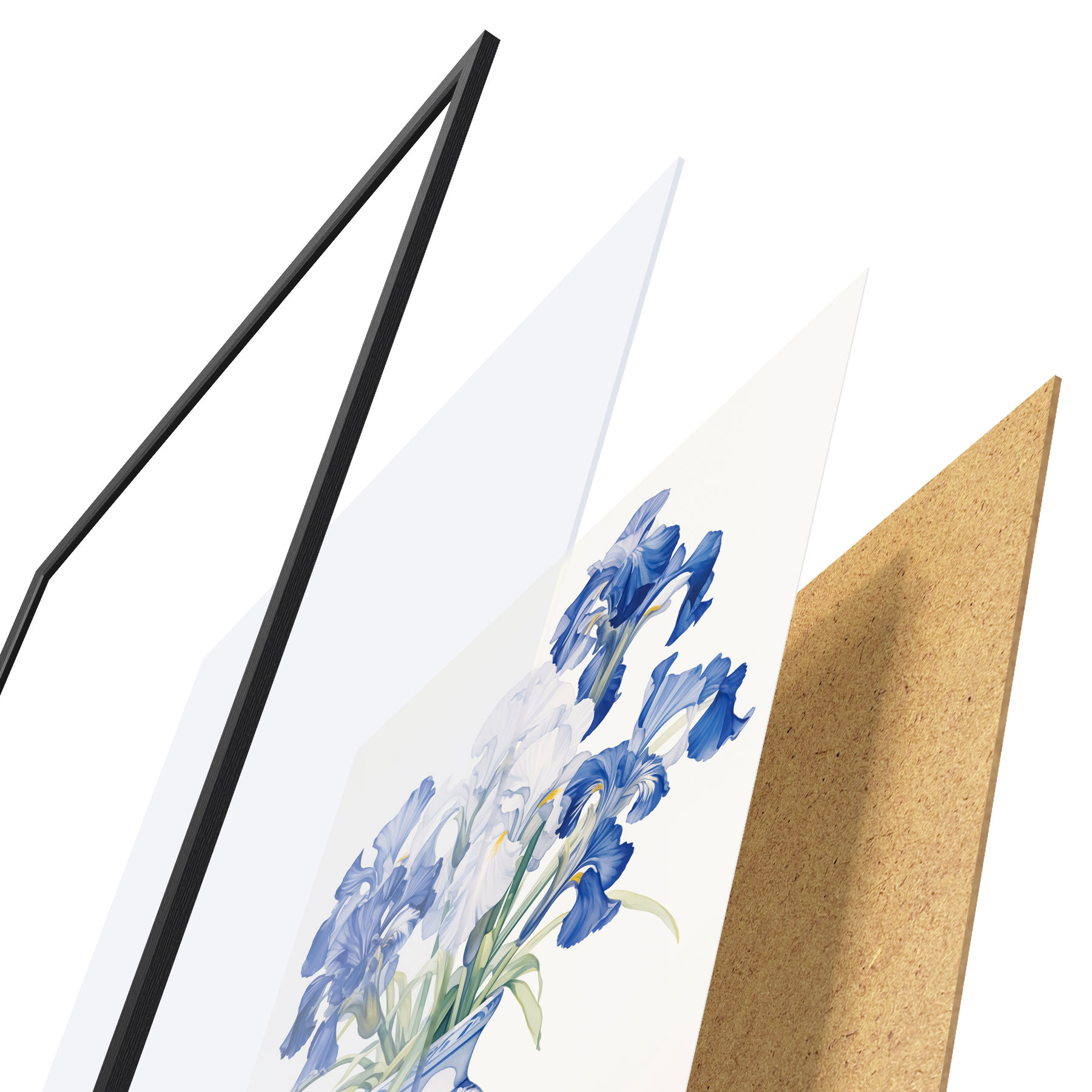 Das Poster besteht aus einem Rahmen, Plexiglas, einem gedruckten Bild und einer Rückwand aus Spanplatten. Dank der Halterungen auf der Rückseite kann das Poster sofort an die Wand gehängt werden.