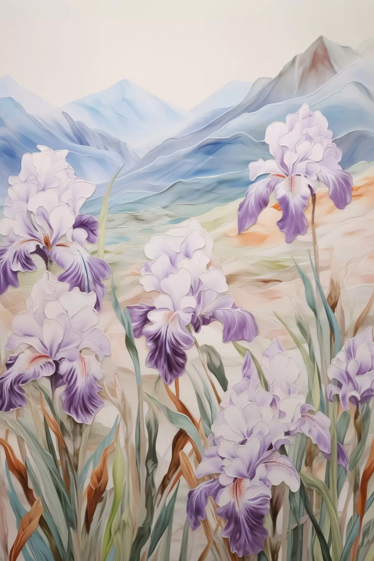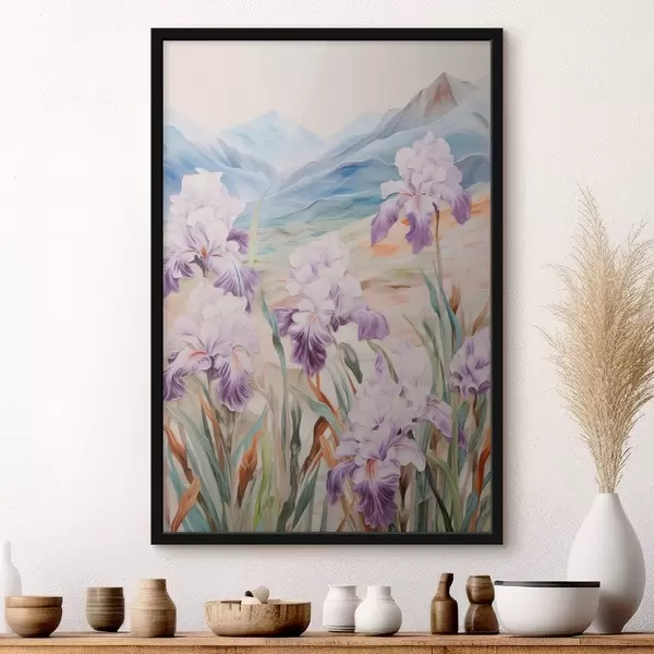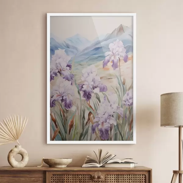 Poster Schwertlilien vor der Kulisse der Berge Nr f44599