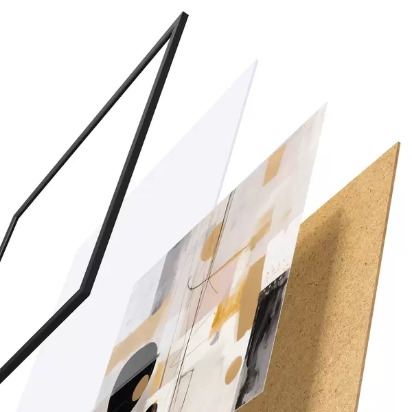 Das Poster besteht aus einem Rahmen, Plexiglas, einem gedruckten Bild und einer Rückwand aus Spanplatten. Dank der Halterungen auf der Rückseite kann das Poster sofort an die Wand gehängt werden.