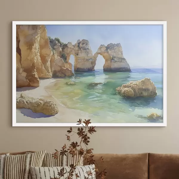 Poster Meeresstrand mit Felsklippen, Portugal, Sommer, aquamarin Nr f44608
