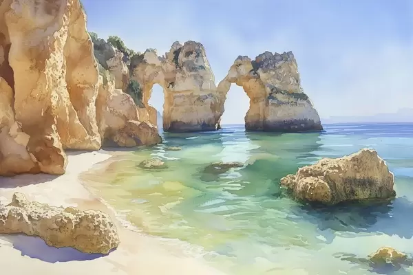 Poster Meeresstrand mit Felsklippen, Portugal, Sommer, aquamarin Nr f44608