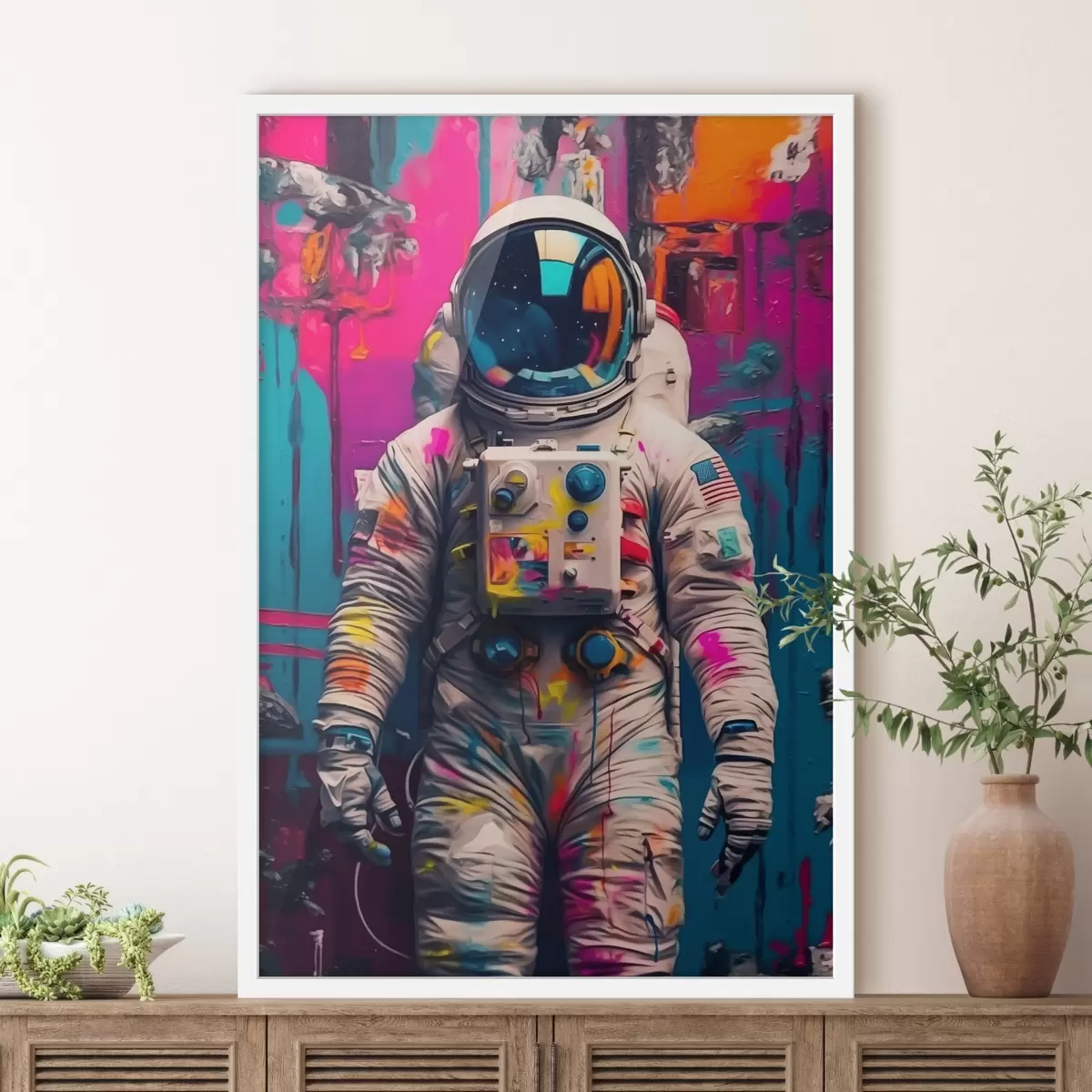 Das Poster besteht aus einem Rahmen, Plexiglas, einem gedruckten Bild und einer Rückwand aus Spanplatten. Dank der Halterungen auf der Rückseite kann das Poster sofort an die Wand gehängt werden.