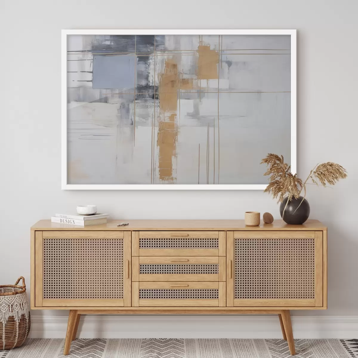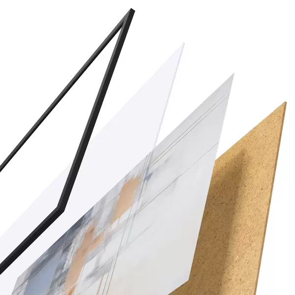 Das Poster besteht aus einem Rahmen, Plexiglas, einem gedruckten Bild und einer Rückwand aus Spanplatten. Dank der Halterungen auf der Rückseite kann das Poster sofort an die Wand gehängt werden.