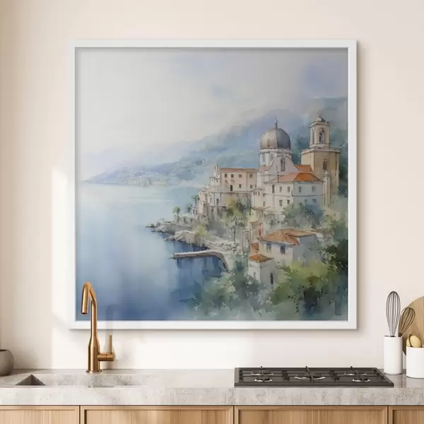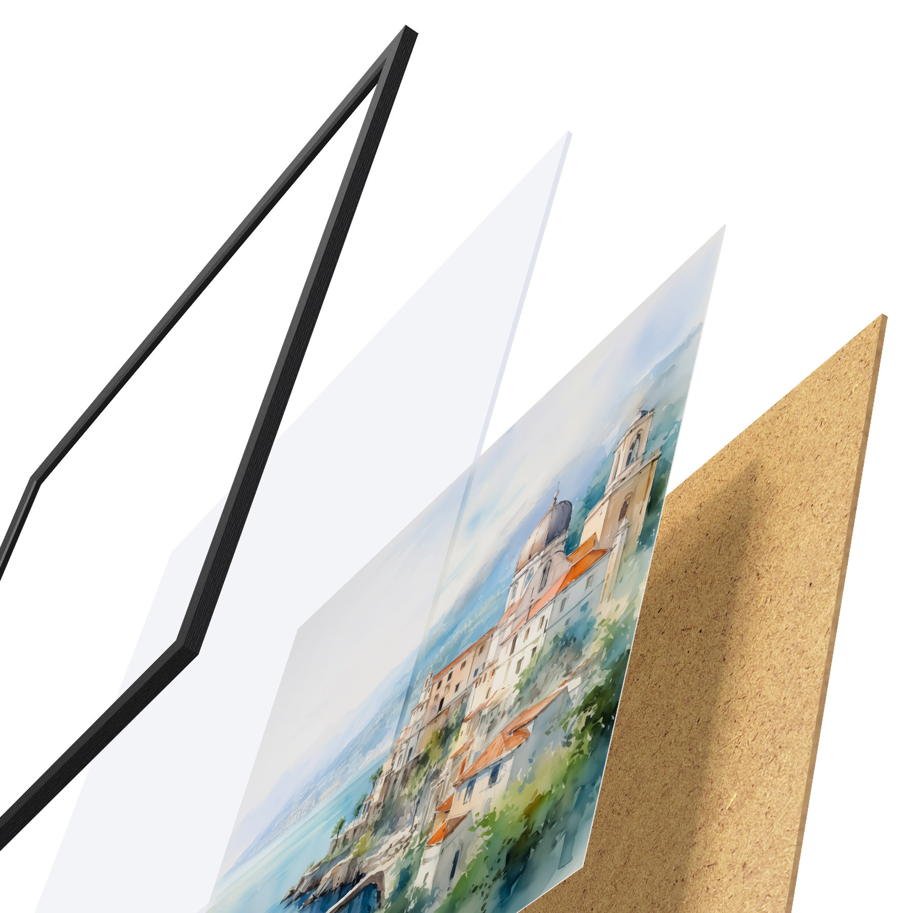 Poster Stadt am Meer Nachahmung von Aquarell f44635
