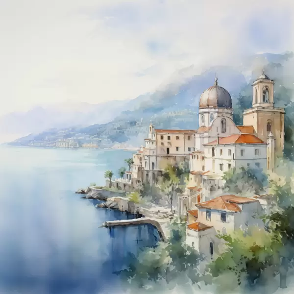 Poster Stadt am Meer Nachahmung von Aquarell Nr f44635