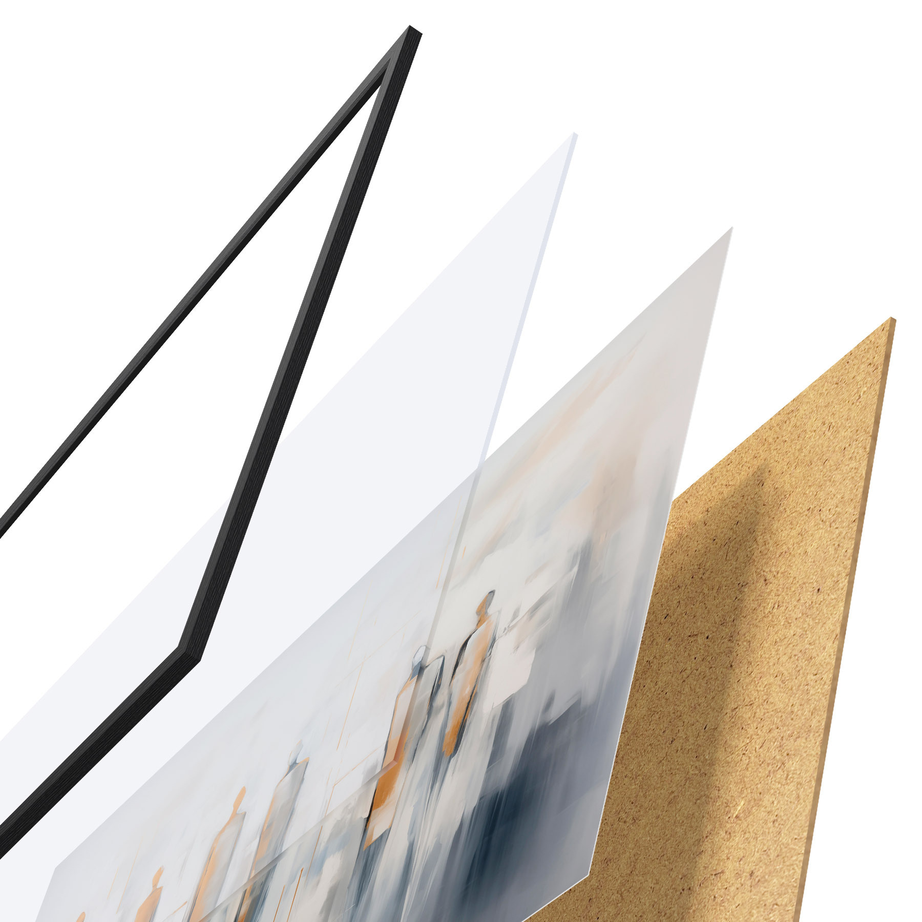 Das Poster besteht aus einem Rahmen, Plexiglas, einem gedruckten Bild und einer Rückwand aus Spanplatten. Dank der Halterungen auf der Rückseite kann das Poster sofort an die Wand gehängt werden.