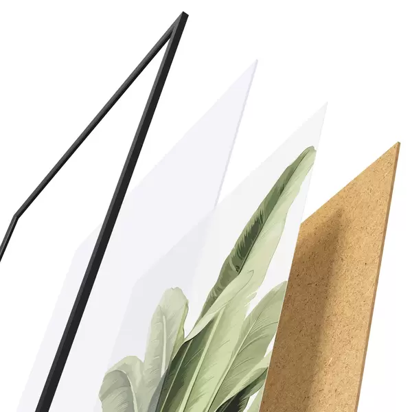 Das Poster besteht aus einem Rahmen, Plexiglas, einem gedruckten Bild und einer Rückwand aus Spanplatten. Dank der Halterungen auf der Rückseite kann das Poster sofort an die Wand gehängt werden.