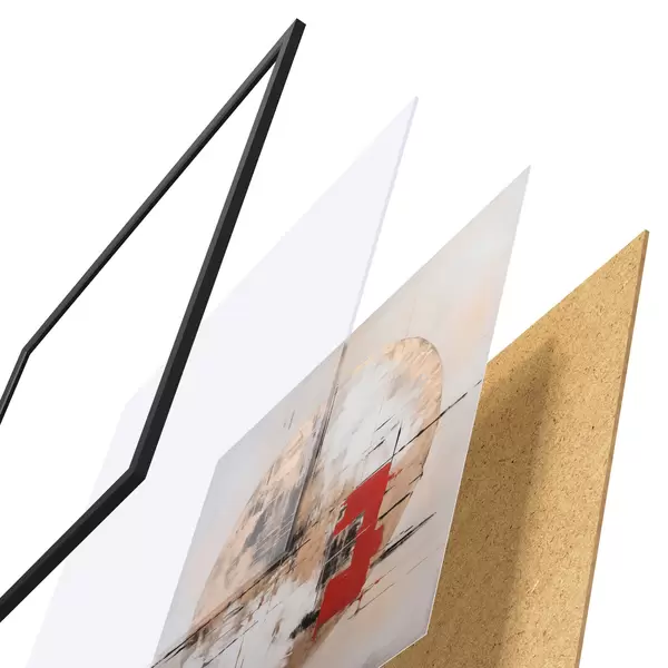 Das Poster besteht aus einem Rahmen, Plexiglas, einem gedruckten Bild und einer Rückwand aus Spanplatten. Dank der Halterungen auf der Rückseite kann das Poster sofort an die Wand gehängt werden.