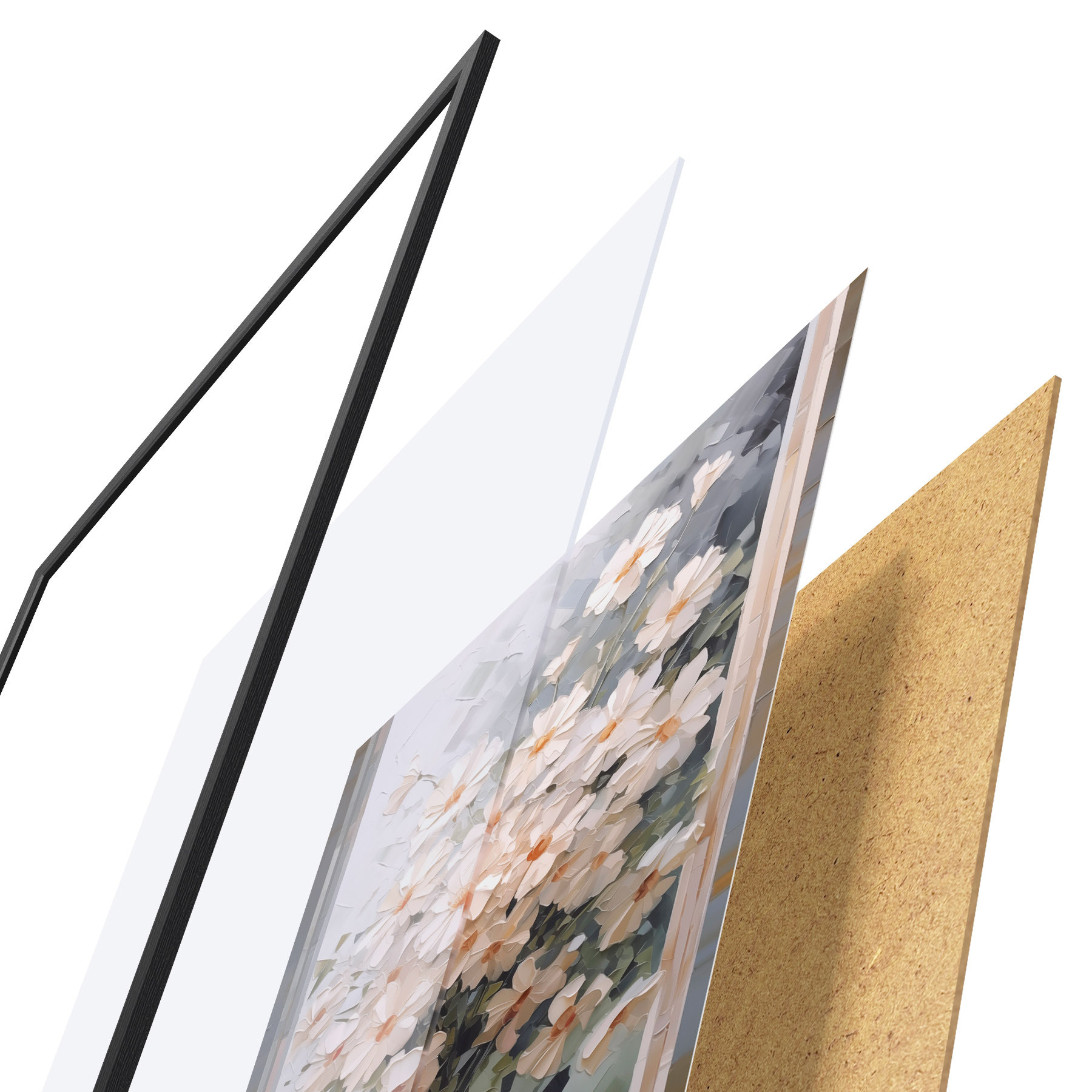Das Poster besteht aus einem Rahmen, Plexiglas, einem gedruckten Bild und einer Rückwand aus Spanplatten. Dank der Halterungen auf der Rückseite kann das Poster sofort an die Wand gehängt werden.