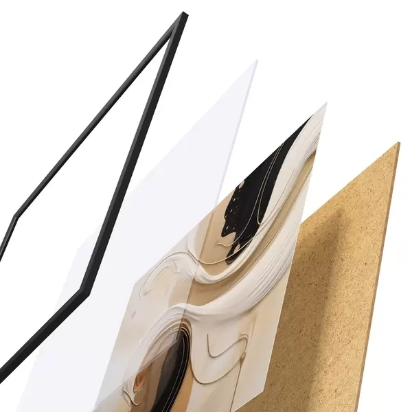 Das Poster besteht aus einem Rahmen, Plexiglas, einem gedruckten Bild und einer Rückwand aus Spanplatten. Dank der Halterungen auf der Rückseite kann das Poster sofort an die Wand gehängt werden.