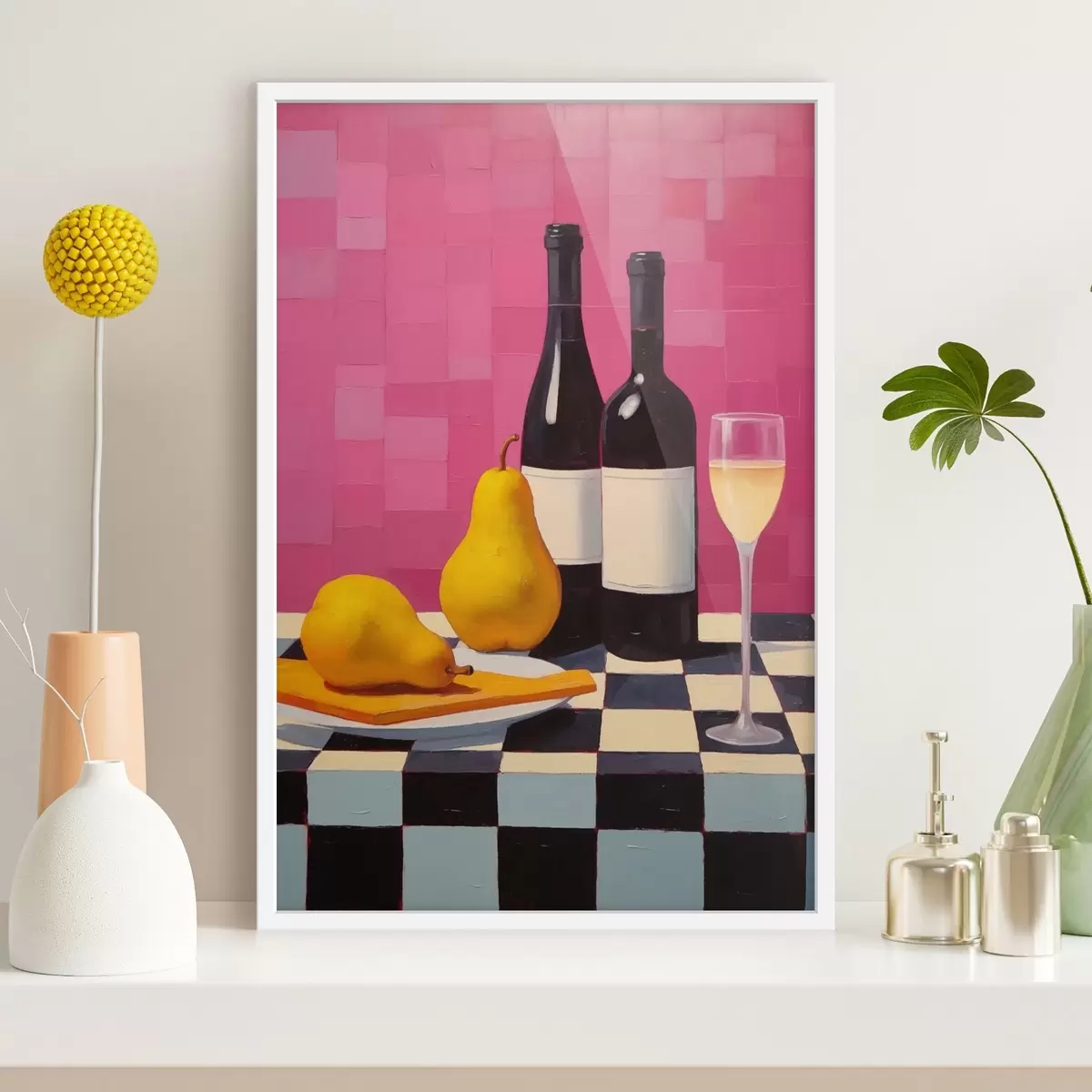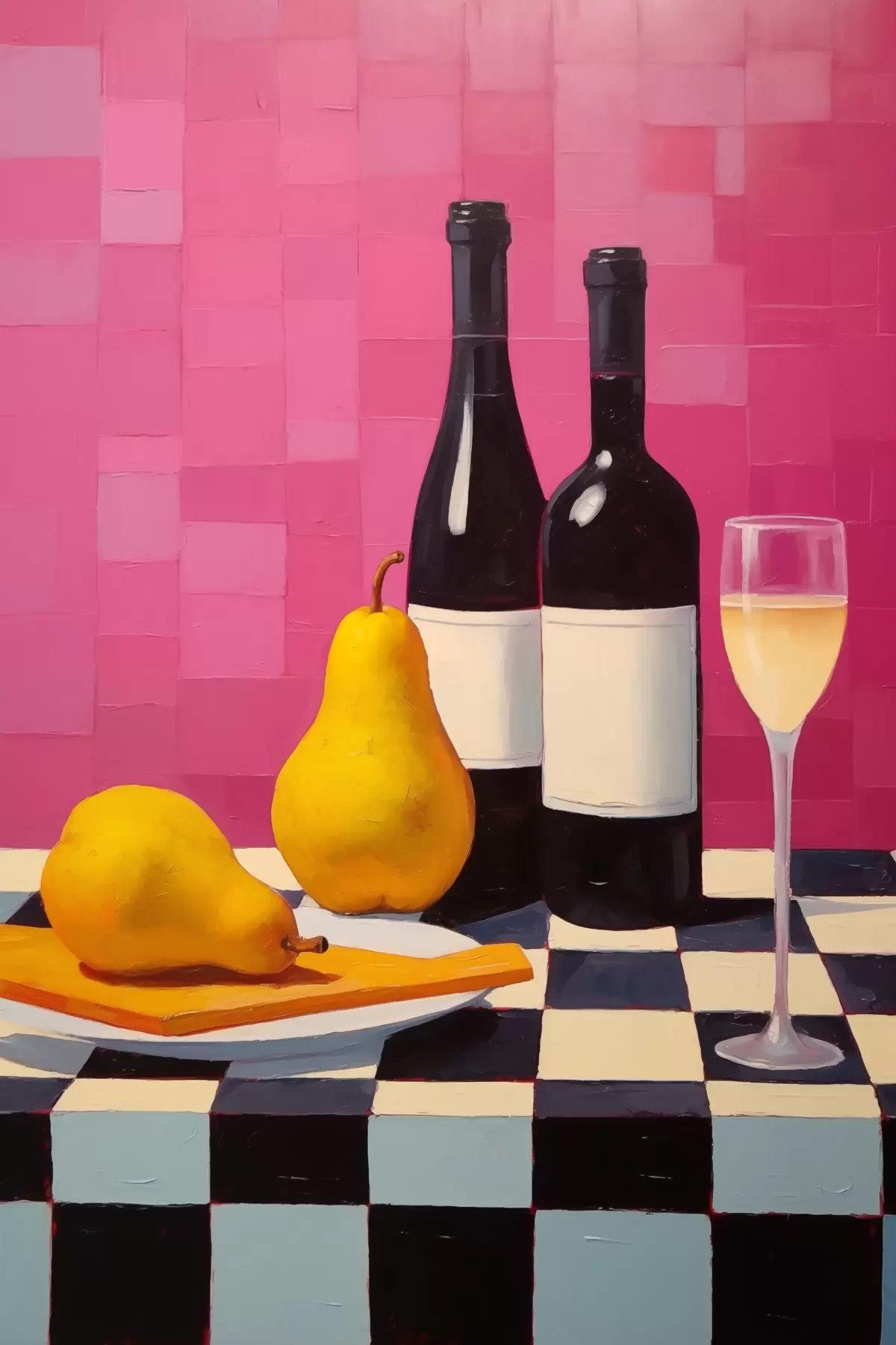 Poster Birnen, ein Glas Wein und zwei Flaschen Wein Nr f44683