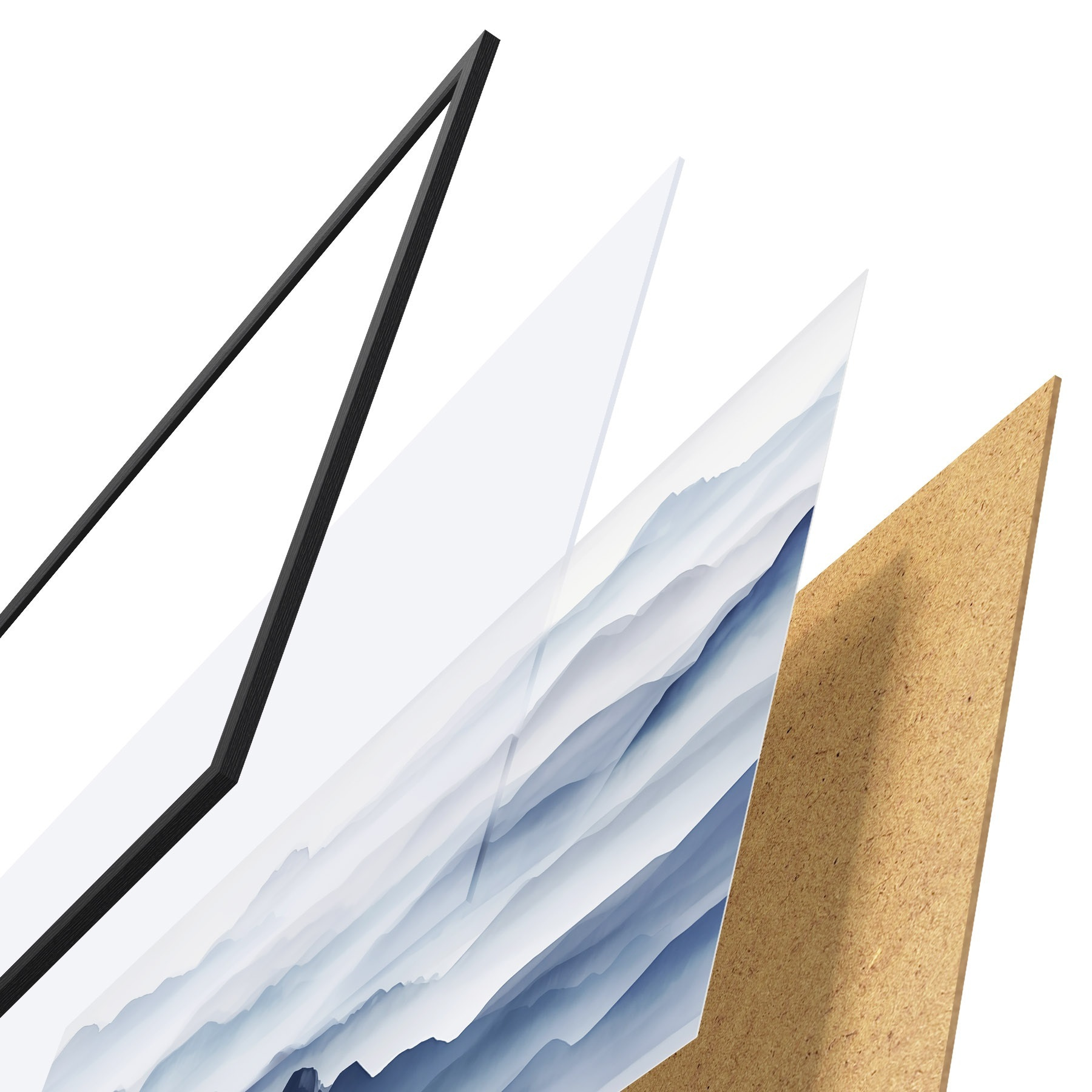 Das Poster besteht aus einem Rahmen, Plexiglas, einem gedruckten Bild und einer Rückwand aus Spanplatten. Dank der Halterungen auf der Rückseite kann das Poster sofort an die Wand gehängt werden.