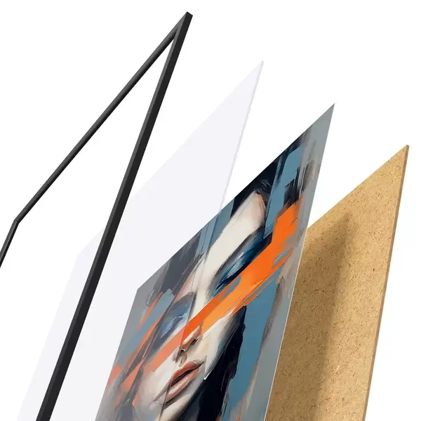 Das Poster besteht aus einem Rahmen, Plexiglas, einem gedruckten Bild und einer Rückwand aus Spanplatten. Dank der Halterungen auf der Rückseite kann das Poster sofort an die Wand gehängt werden.