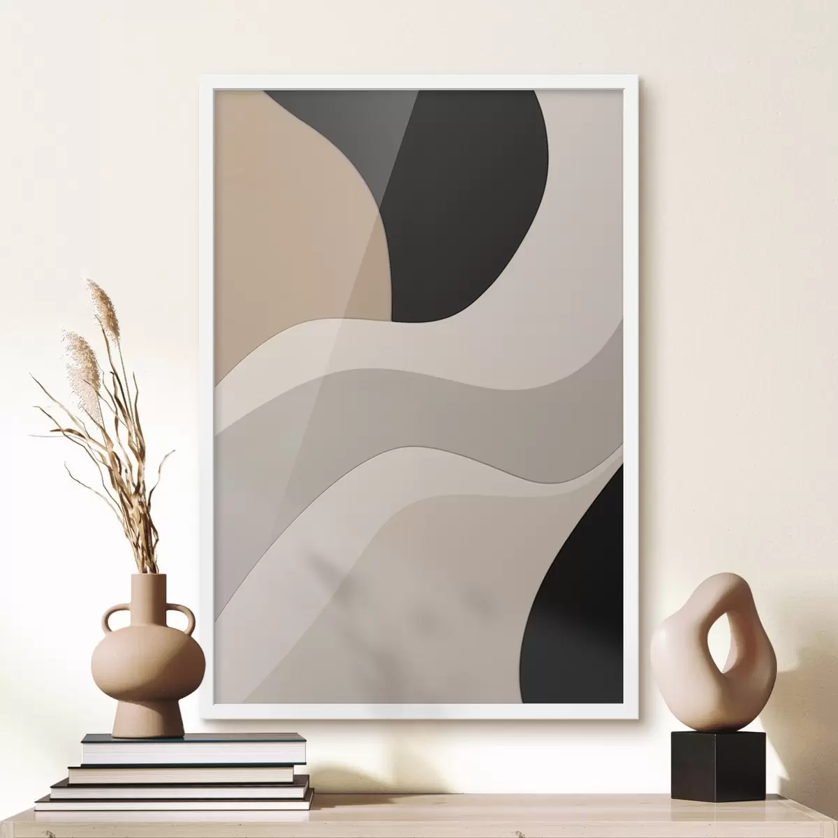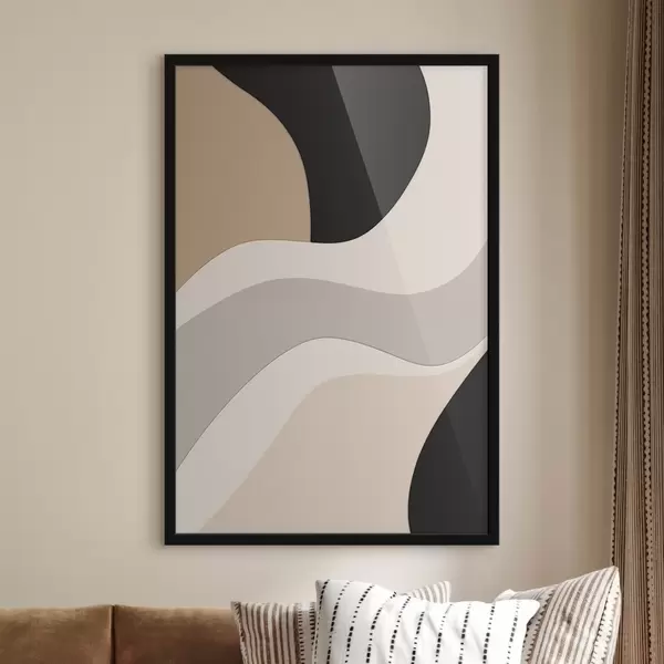 Poster Abstrakte Wellen in Beige und Schwarz f44688