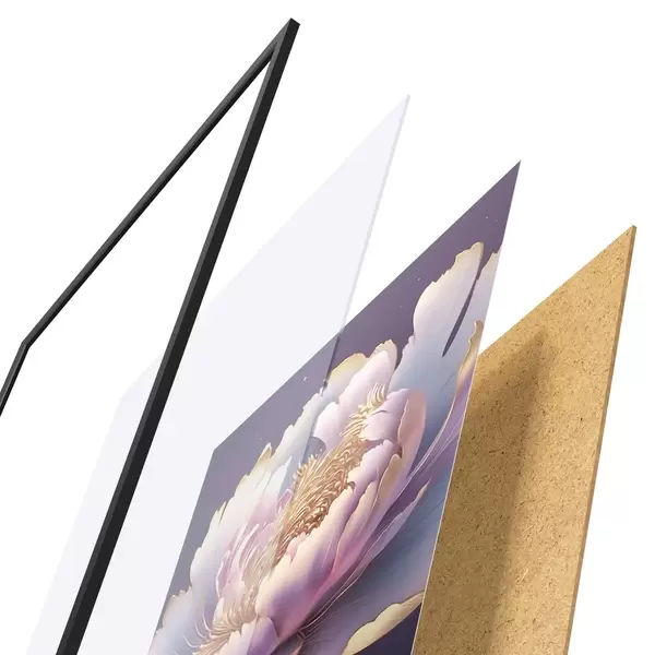 Das Poster besteht aus einem Rahmen, Plexiglas, einem gedruckten Bild und einer Rückwand aus Spanplatten. Dank der Halterungen auf der Rückseite kann das Poster sofort an die Wand gehängt werden.