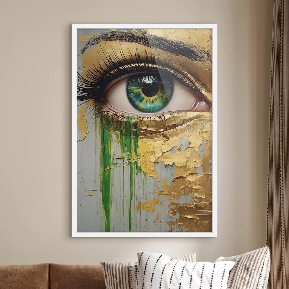 Poster Grünes Auge auf dem Hintergrund von gerissener Farbe Nr f44690
