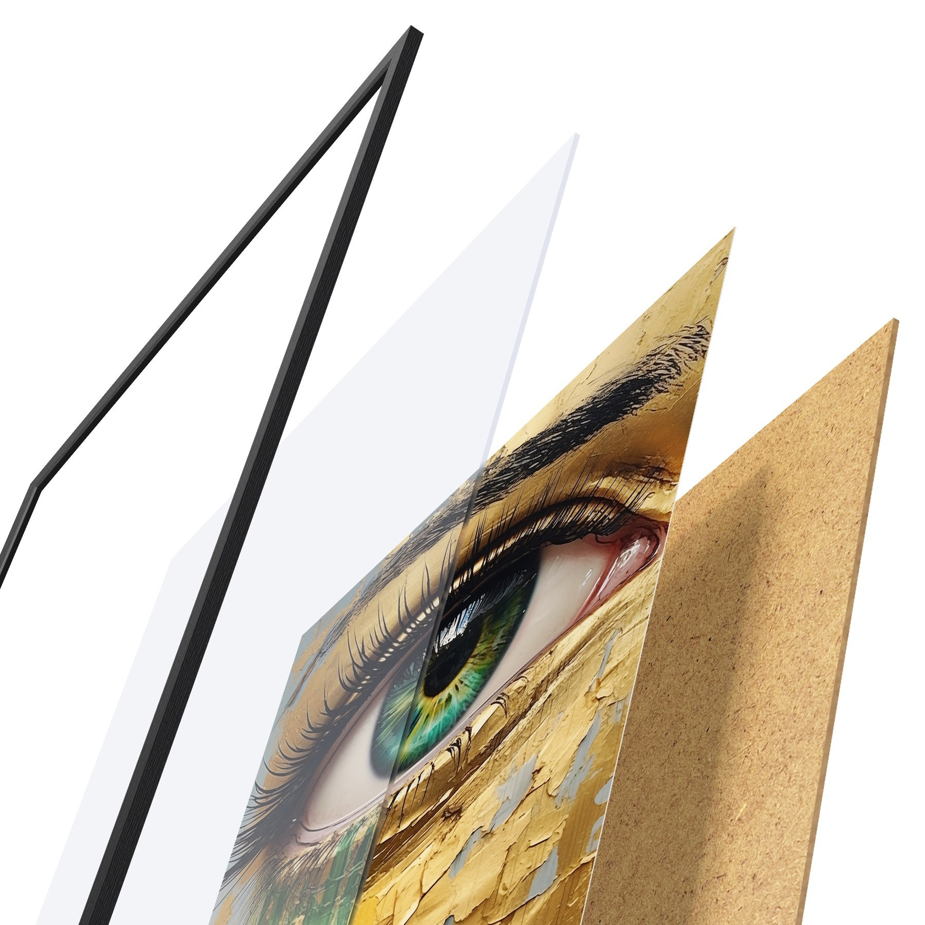 Das Poster besteht aus einem Rahmen, Plexiglas, einem gedruckten Bild und einer Rückwand aus Spanplatten. Dank der Halterungen auf der Rückseite kann das Poster sofort an die Wand gehängt werden.