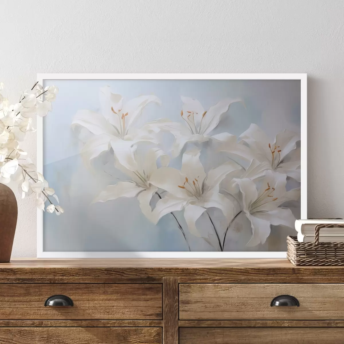 Sie können das Bild an Schrauben aufhängen. Dazu legen wir unseren Bildern Halterungen bei, mit denen Sie das Bild bequem aufhängen können.