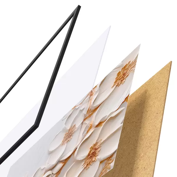 Das Poster besteht aus einem Rahmen, Plexiglas, einem gedruckten Bild und einer Rückwand aus Spanplatten. Dank der Halterungen auf der Rückseite kann das Poster sofort an die Wand gehängt werden.