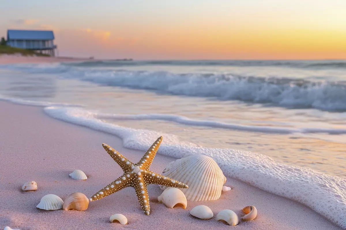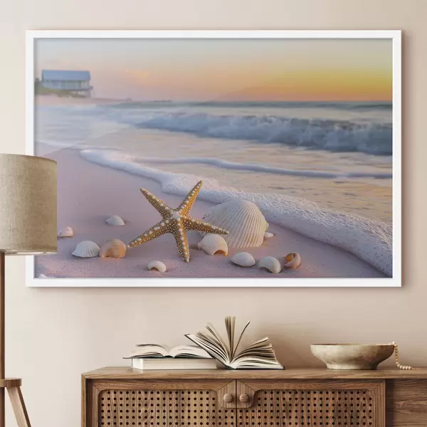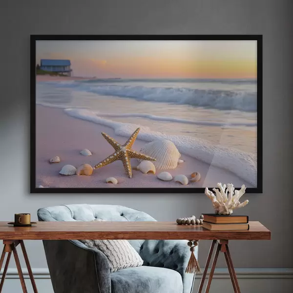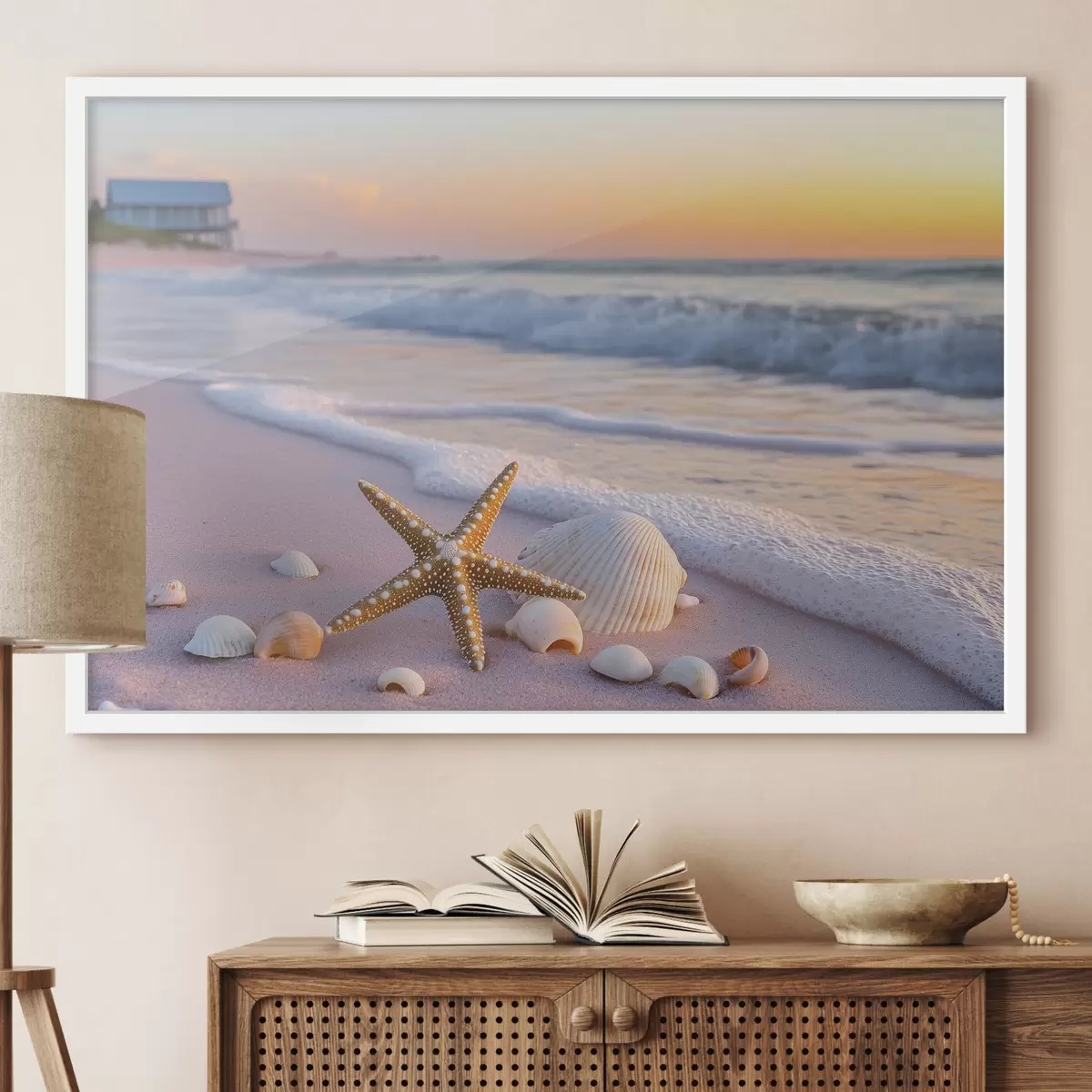 Poster Meeresküste mit Seesternen, Muscheln und Wellen Nr f44714