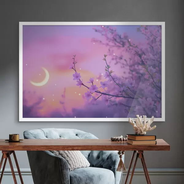 Poster Lila Himmel mit Mond und Kirschbäumen f44717