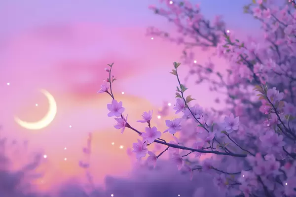 Poster Lila Himmel mit Mond und Kirschbäumen f44717