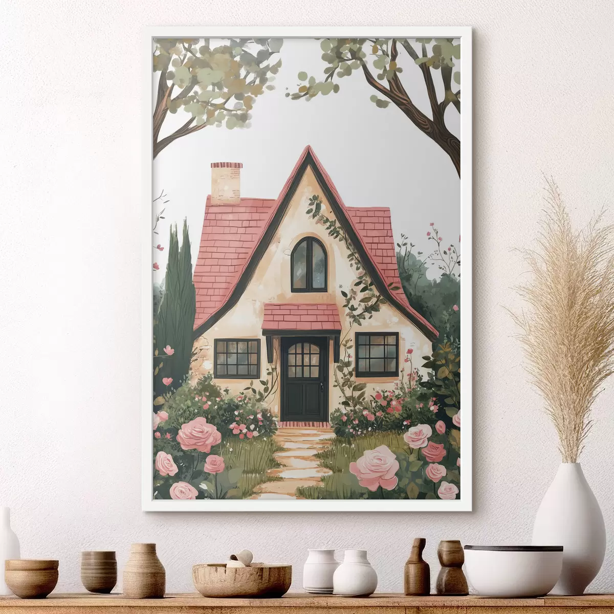 Poster Ein märchenhaftes Haus im Wald, Rosen, Pastellfarben Nr f44718