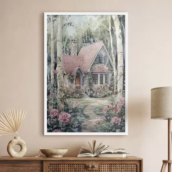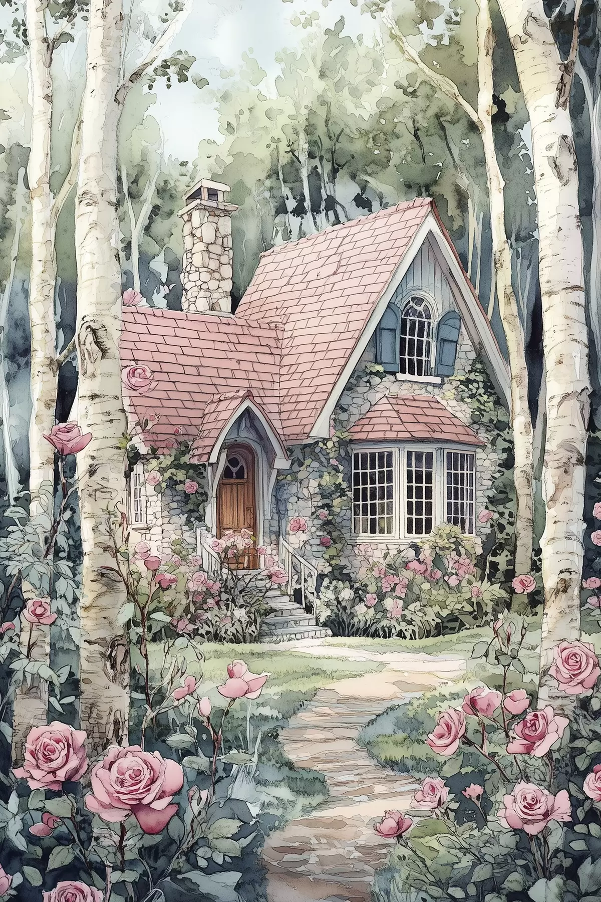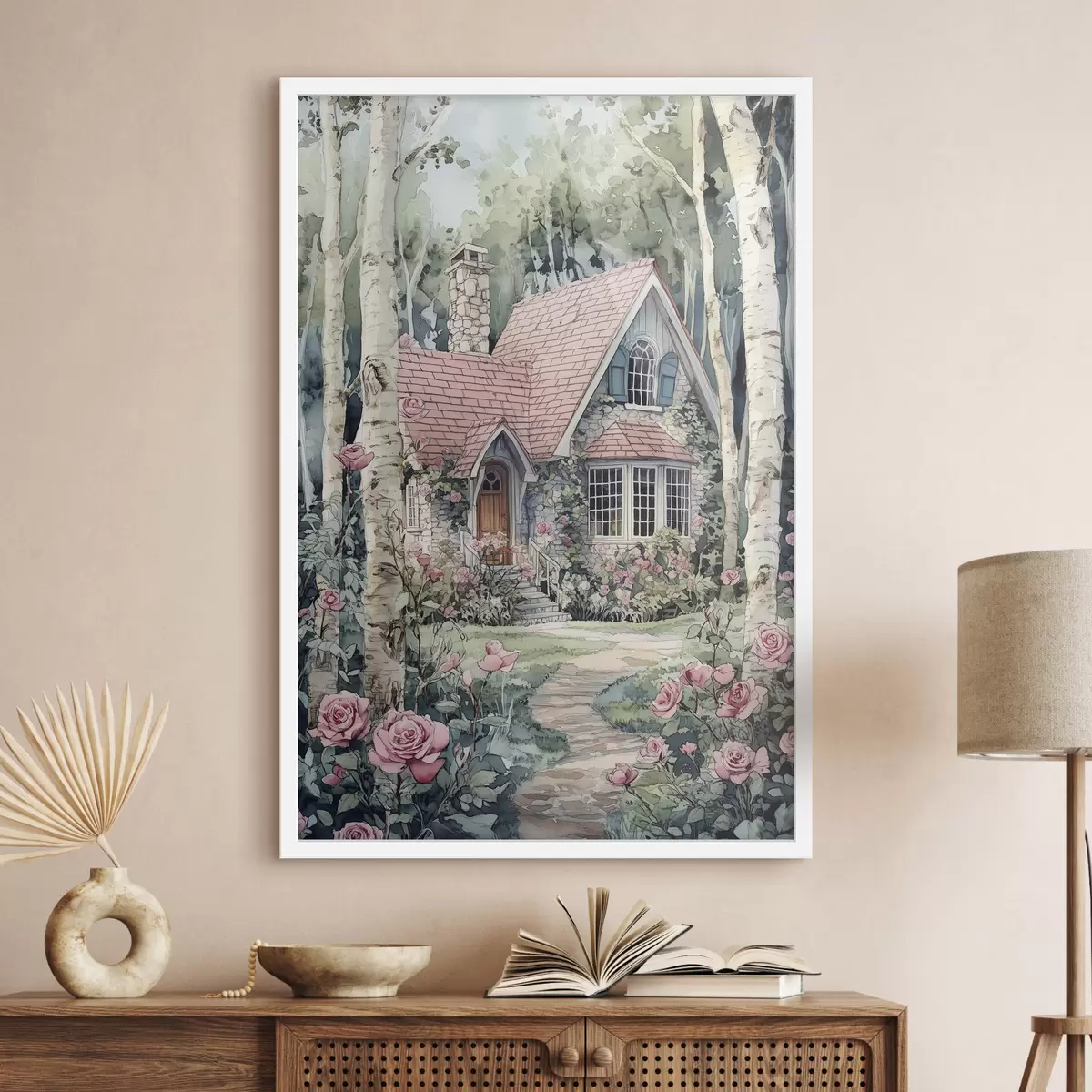Poster Schönes Haus in der Birke, Rosengarten Nr f44721
