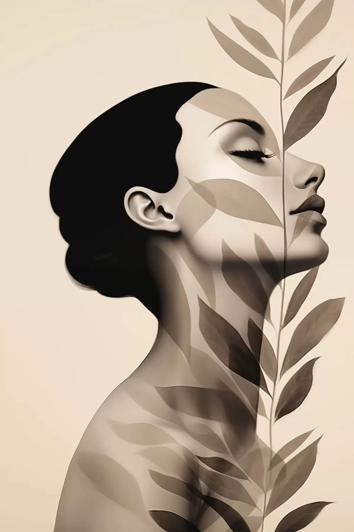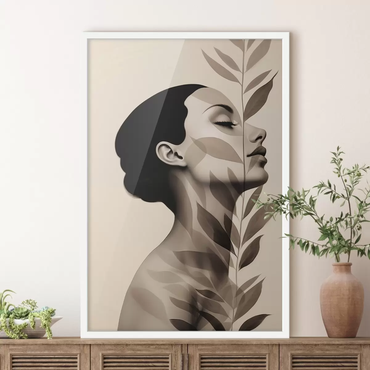 Poster Weibliches Profil mit floralem Muster Nr f44725