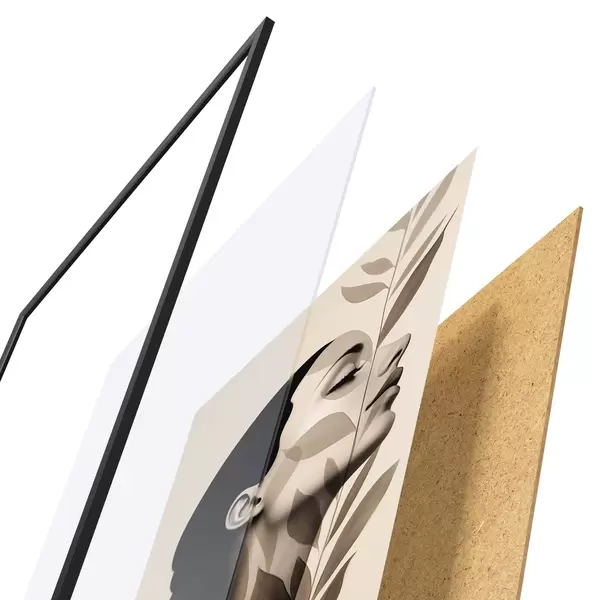Das Poster besteht aus einem Rahmen, Plexiglas, einem gedruckten Bild und einer Rückwand aus Spanplatten. Dank der Halterungen auf der Rückseite kann das Poster sofort an die Wand gehängt werden.
