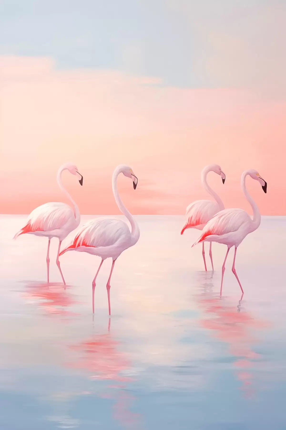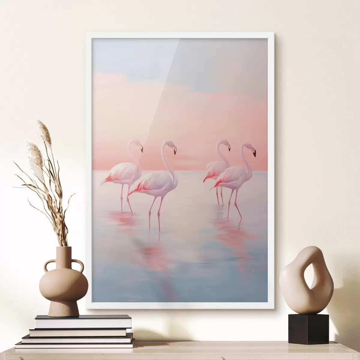 Poster Flamingos im seichten Wasser bei Sonnenuntergang f44732