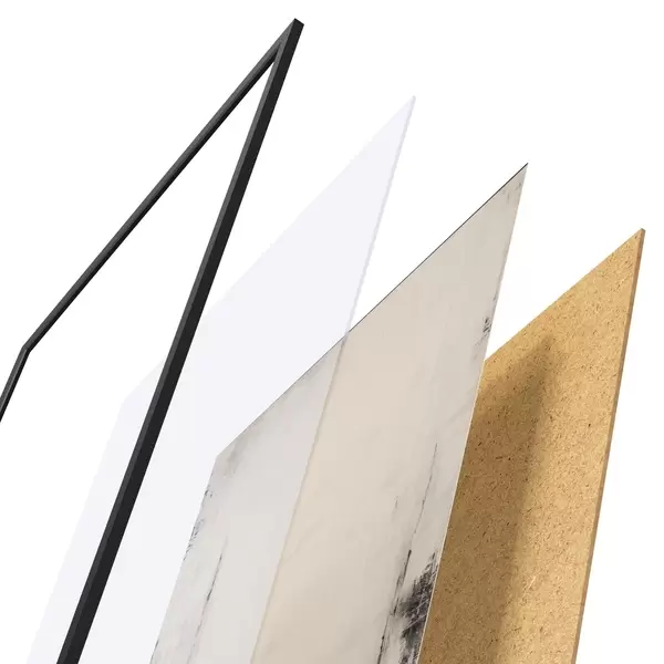 Das Poster besteht aus einem Rahmen, Plexiglas, einem gedruckten Bild und einer Rückwand aus Spanplatten. Dank der Halterungen auf der Rückseite kann das Poster sofort an die Wand gehängt werden.