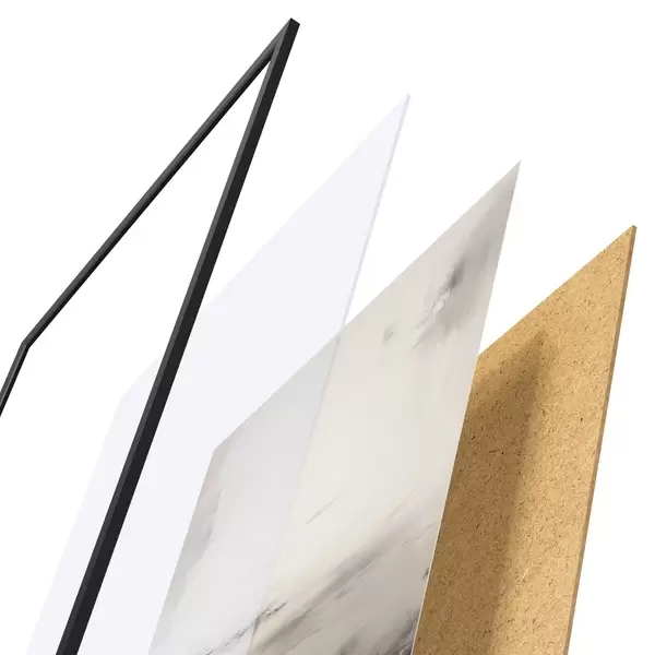 Das Poster besteht aus einem Rahmen, Plexiglas, einem gedruckten Bild und einer Rückwand aus Spanplatten. Dank der Halterungen auf der Rückseite kann das Poster sofort an die Wand gehängt werden.
