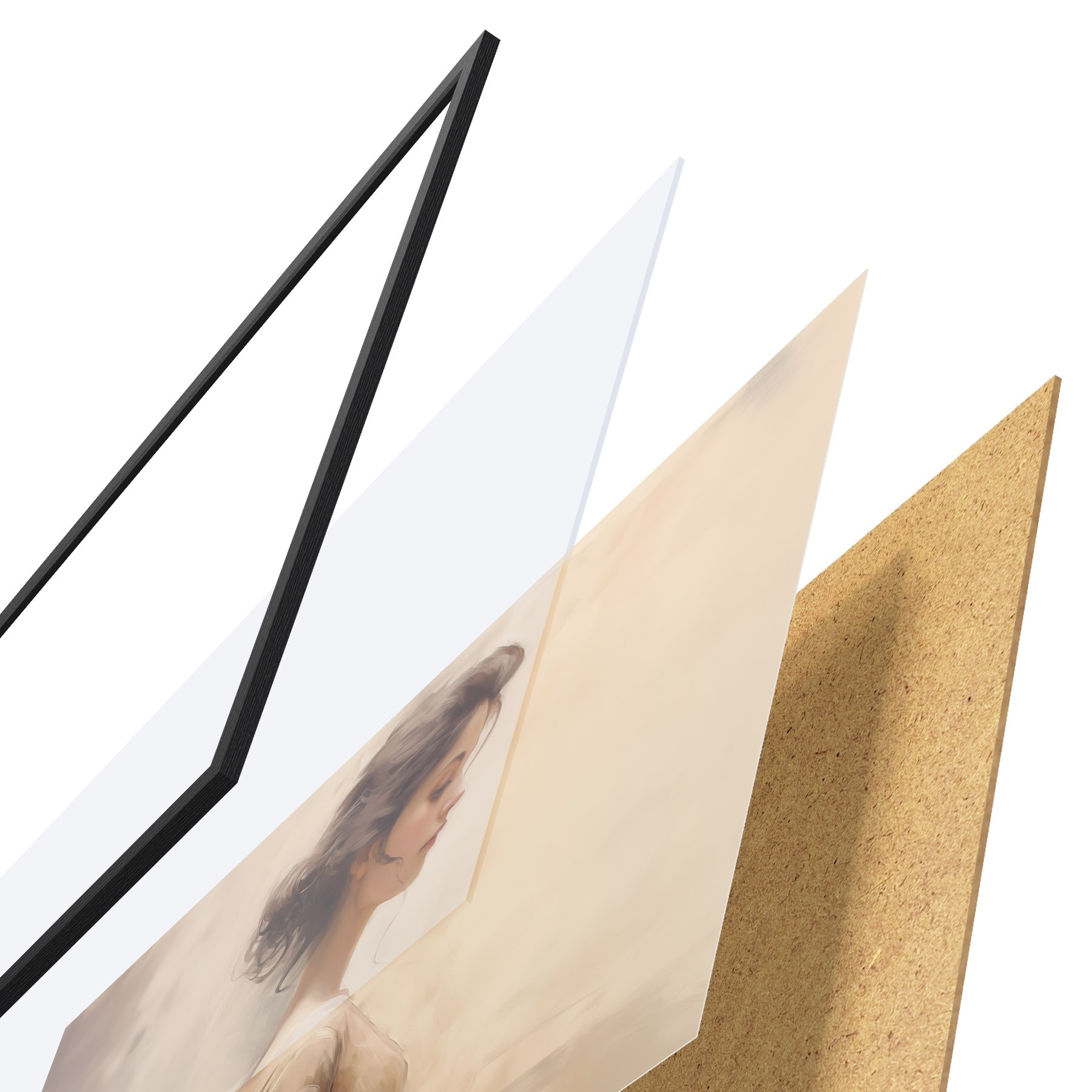 Das Poster besteht aus einem Rahmen, Plexiglas, einem gedruckten Bild und einer Rückwand aus Spanplatten. Dank der Halterungen auf der Rückseite kann das Poster sofort an die Wand gehängt werden.